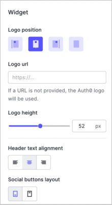 Add the URL of your logo to configure the position, height, text alignment, and social login location.