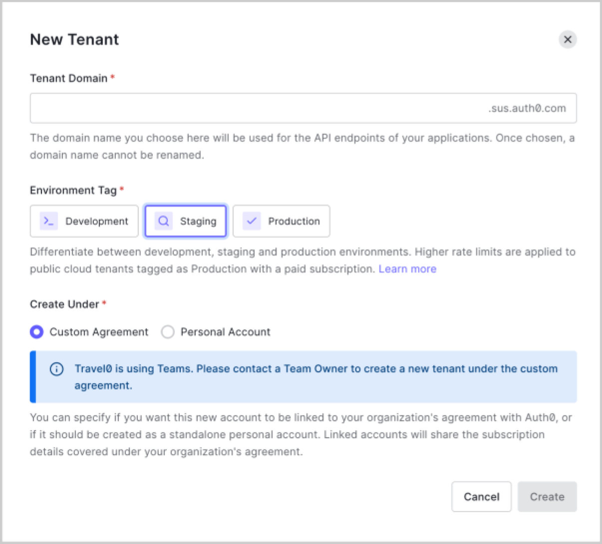 L’option Création de locataires ne s’applique pas aux propriétaires d’équipe. Les propriétaires ont le droit de créer de nouveaux locataires dans l’instance Teams dans le cadre de l’accord personnalisé ou de l’abonnement.
