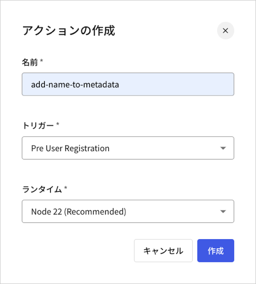 pre-user-registration(ユーザー登録前)トリガーを使用すると、サインアッププロンプトでエンドユーザーが提供したデータ(ユーザーの電話番号や位置情報など)をuser_metadataに追加することができます。このデータを任意で検証して、プロンプトに検証エラーを表示することもできます。