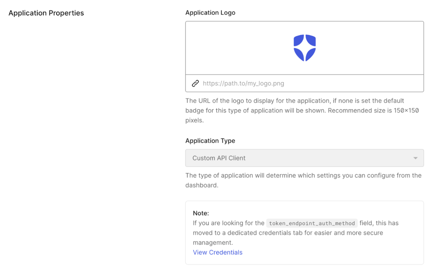 • Click Add. Once the application has been successfully created, click Configure Application and scroll to Application Properties. The Application Type is a Custom API Client.